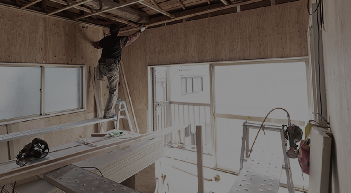 外壁の改修にあたっては、防火性や耐久性などの観点から、素材の選定や施工方法の検討。建物の構造的な問題を解決するために、梁や柱の補強や交換、床や壁の補修などをおこないます。
